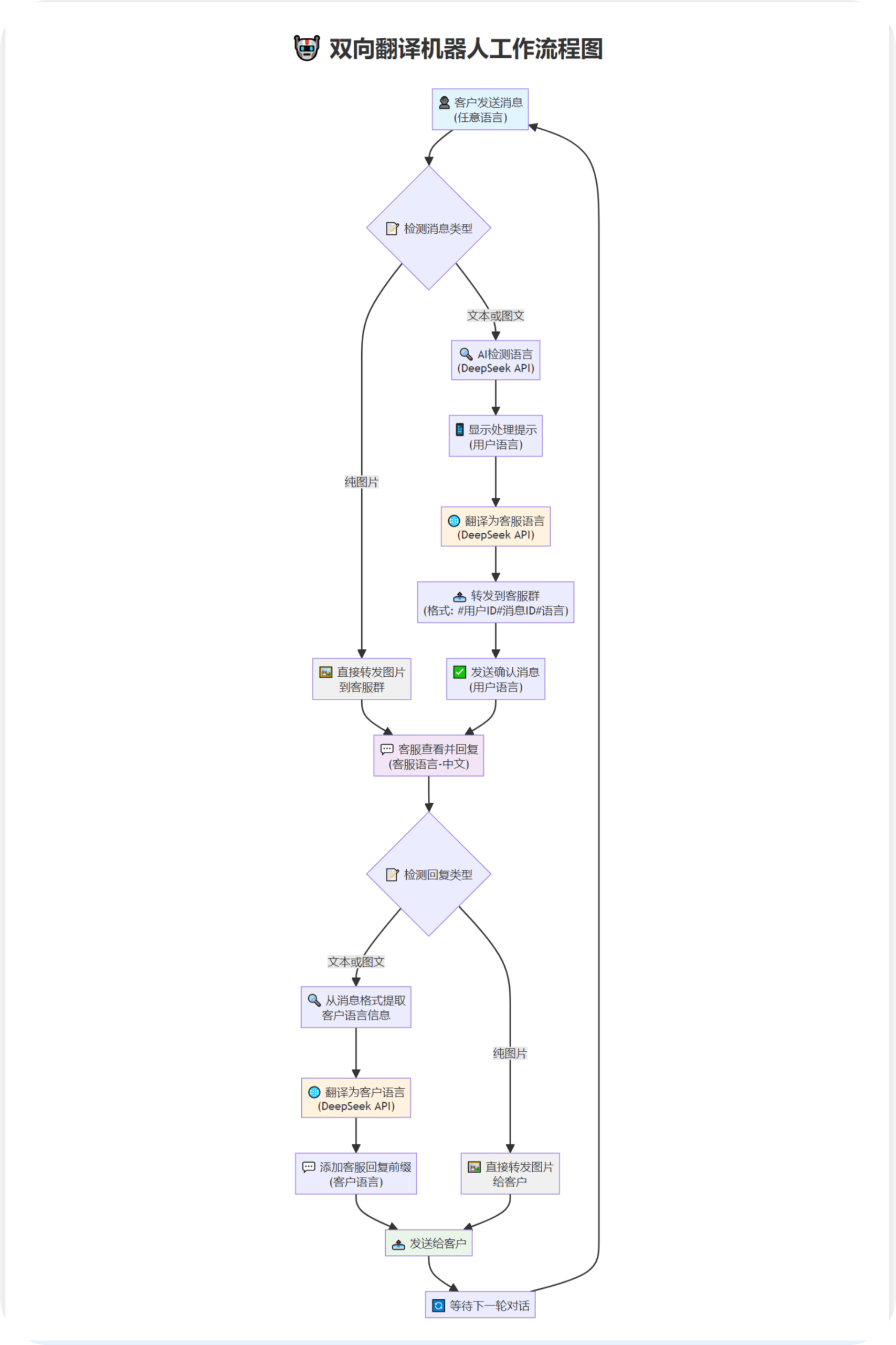 2.将客户消息翻译为客服配置的指定语言,不管客户消息是哪个国家的语言,只要是deepseek能识别的语言都可以。